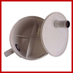 Osadnik kanalizacji Osadnik posiada cztery komory, a zasada działania opiera się na kaskadowym przepływie wody. Skutecznie chroni instalację kanalizacyjną przed wszelkimi odpadkami cięższymi od wody jak gips, masy osłaniające itp. Niezbędny. Przepisy Unijne zobowiązują we wszystkich remontowanych i nowo powstałych pracowniach techniki dentystycznej instalować urządzenia filtrujące odpady ciężkie typu gipsy, masy osłaniające itp. Dołączamy certyfikat zgodności potrzebny dla Sanepidu.